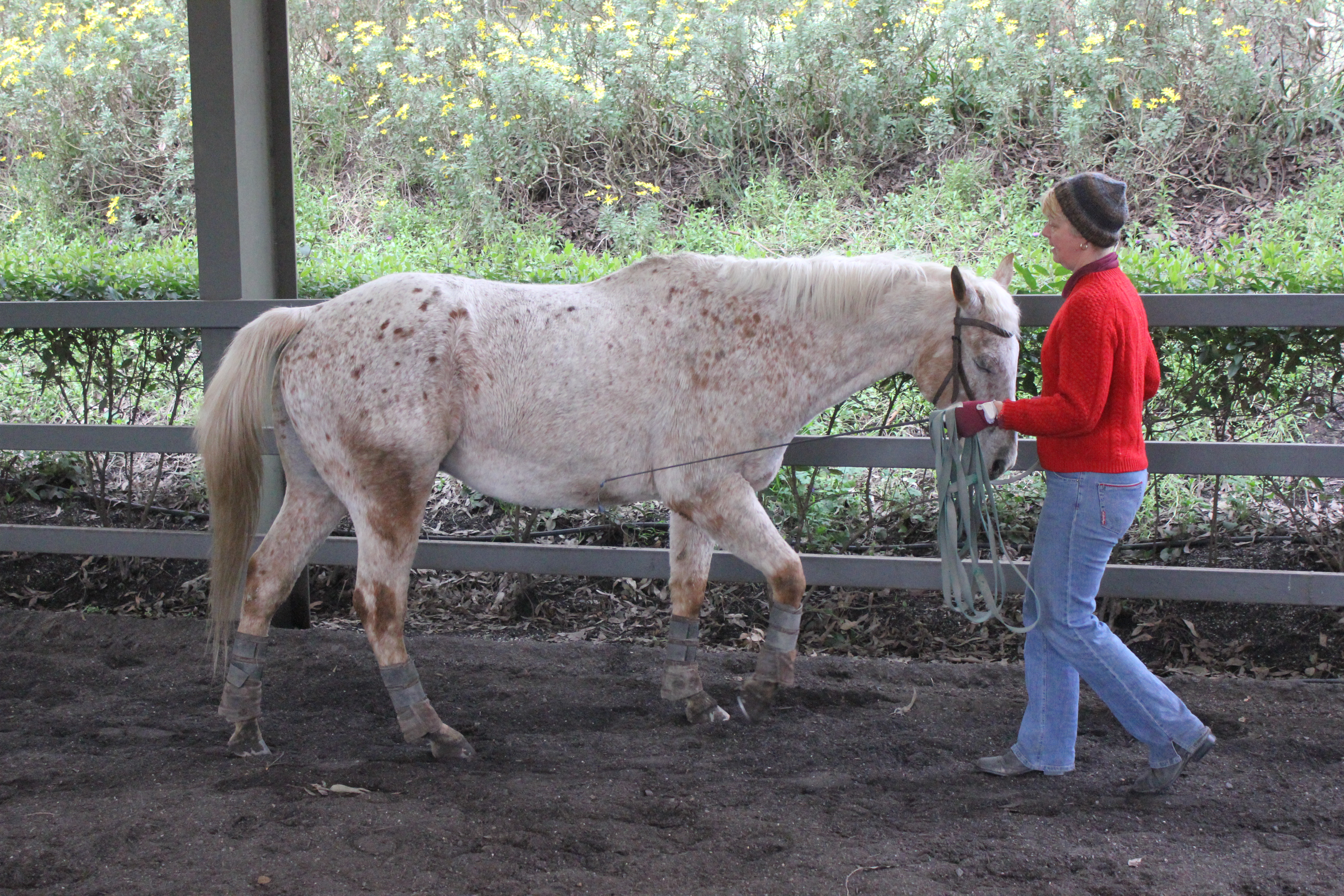* Letting the horse see and feel it quietly from the ground
